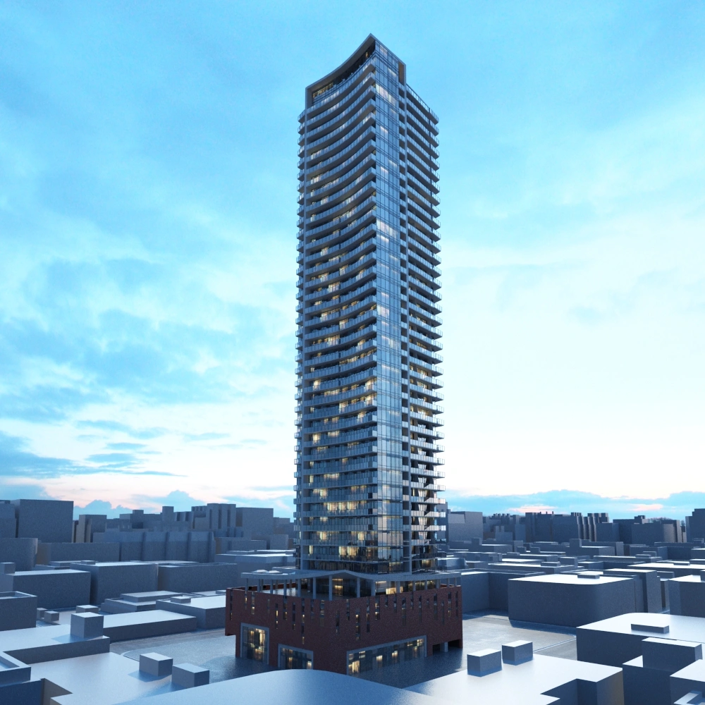 现代简约高层办公楼模型玻璃幕墙设计