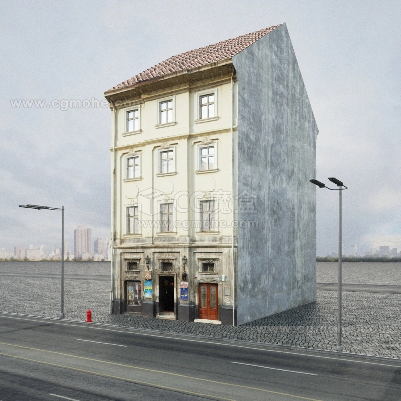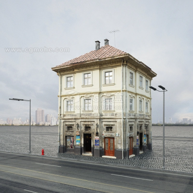 现代城市角落的古典建筑3D模型