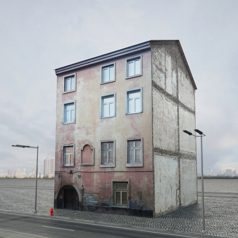 老式砖砌角落建筑3D模型素材