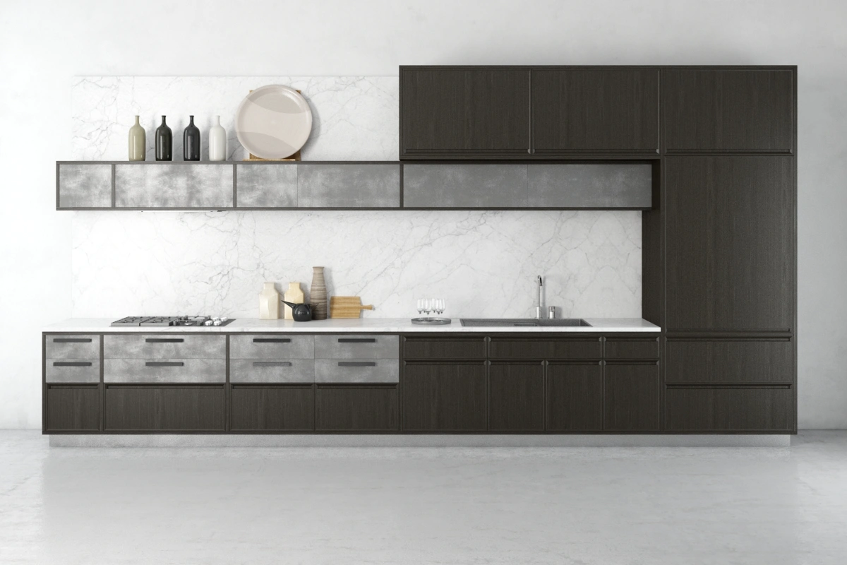 现代简约风格厨房橱柜设计3D模型集合,属于家具类别素材。该素材集合包含40组橱柜设计模型,支持在3dsMax软件中打开,文件格式为max。模型采用V-Ray渲染器,呈现出逼真的视觉效果。此外,模型附有材质贴图,使设计更贴近真实感。